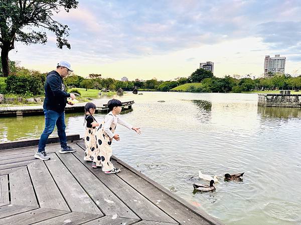 小孩最愛的還有湖畔餵魚,這裡還有許多鴨鴨,餵起來非常有成就感,園區有魚鴨飼料投幣機,銅板價格就能讓孩子餵得好開心~