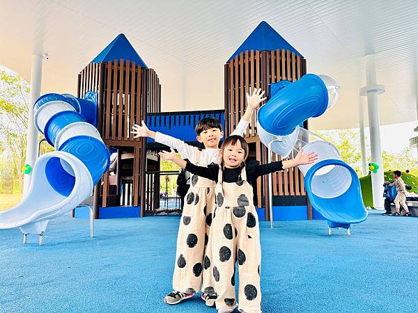 宜蘭特色遊戲場再+1,超美配色好有質感!雨遮半開放式活動空間超加分,晴雨天都能玩!新的全齡共融遊戲場就在羅東運動公園內,設施豐富多元造型可愛,大小朋友都很適合玩,加上公園內還有超大草皮、望天丘、森林步道,還有孩子愛的湖畔餵魚鴨,超適合親子同遊放電趣~