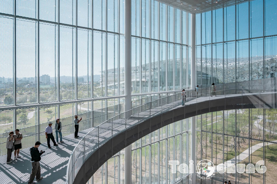 ▼臺中綠美圖的建築外觀除了吸睛還有功能性呢!金屬擴張網不僅帶來通透和柔化的效果,光線透過簍空的擴張網進到室內,朦朧美感都出現了!