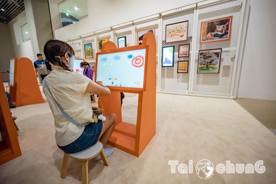 ▼不過孩子們紛紛被隔壁區的小畫家體驗吸引過去,因為在這裡的創作可以登上檯面,成為展間裡牆上的畫作喔~一起來揮灑創意吧!