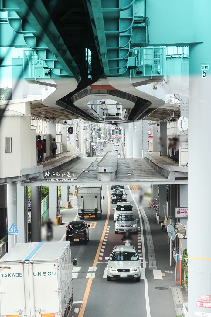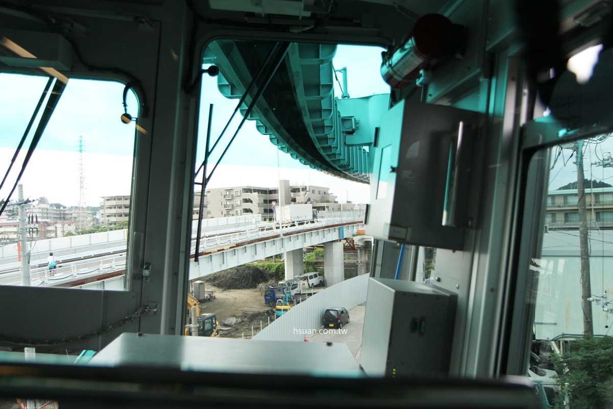 透過窗戶向下俯瞰車輛街景的視角非常特別,沿路會經過隧道、上下坡及彎道,還真有點像在坐雲霄飛車,中途可以到湘南深澤站停留一下,可以拍到懸掛列車從上方經過的畫,小孩都覺得很有趣。
