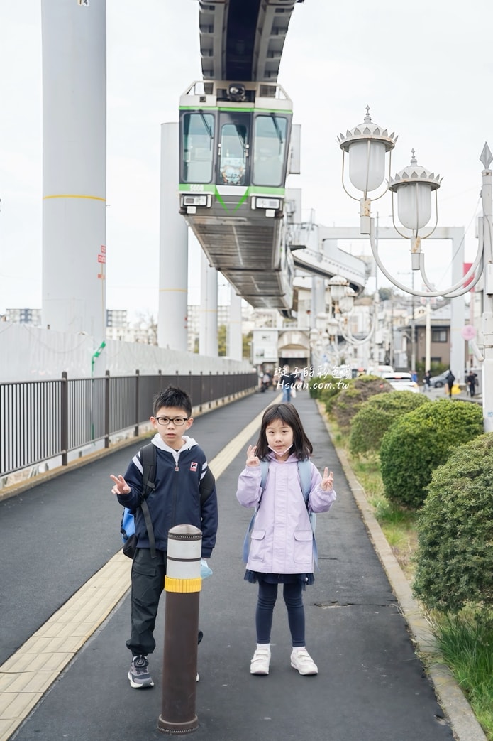 途中可以在這一站下車,這邊可以拍到懸掛列車從頭上經過的畫面,小孩都覺得很有趣。
