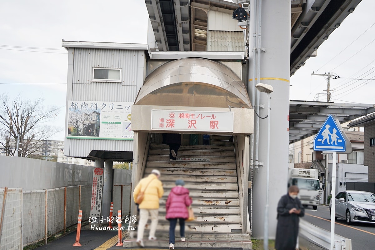在湘南深澤站和單軌電車拍照