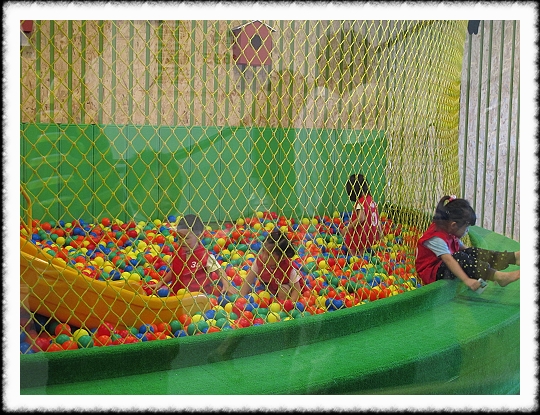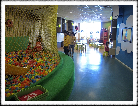 既然萱萱吃不下東西了...那就把她寄放到兒童遊戲區好了.如此,我們夫妻倆就可以安安靜靜,舒舒服服,輕輕鬆鬆地好好吃個早餐了.